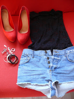 jak widać mam nowe spodenki, kupiłam je od Zielusia siostry za 15zł! są super.. od razu się w nich zakochałam.. miałam iść w szpilkach, ale że to działka, górki, żwir, trawa.. to nawet nie opłacało mi się ich ubierać :)